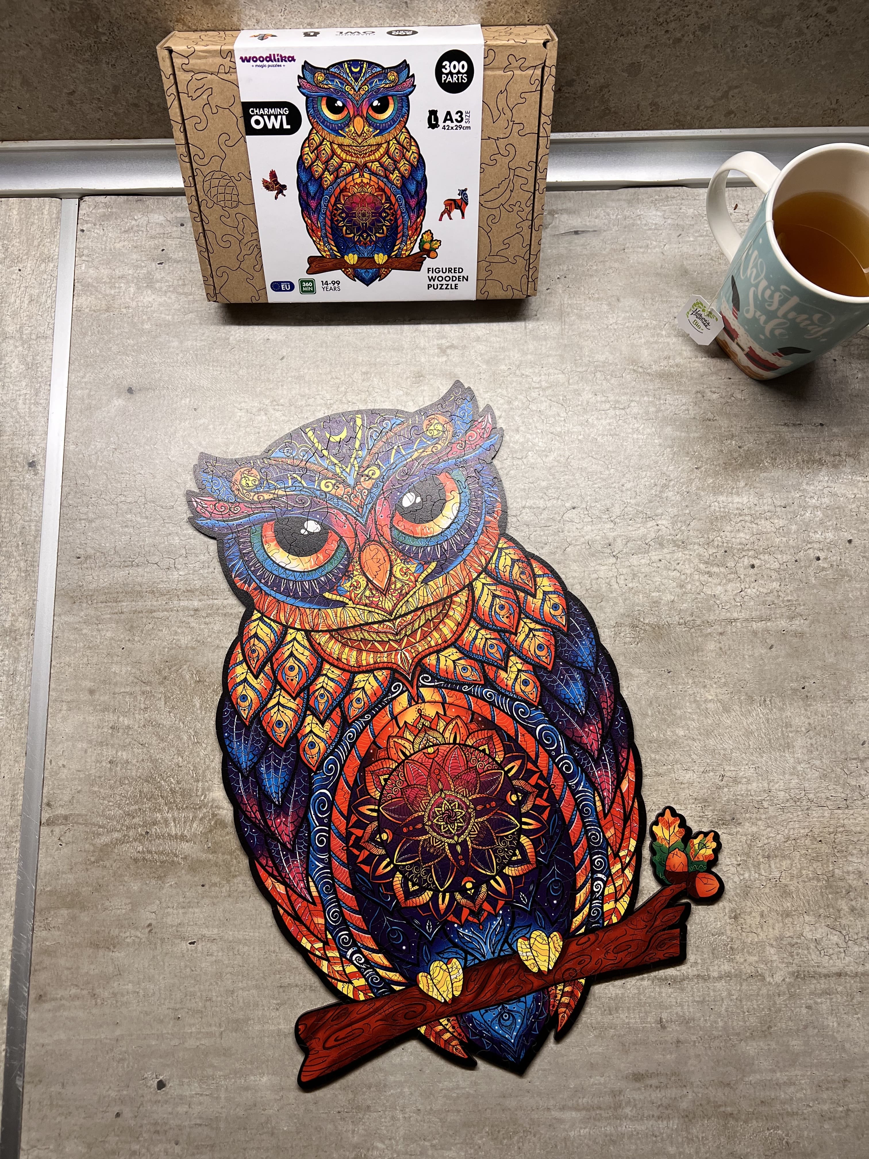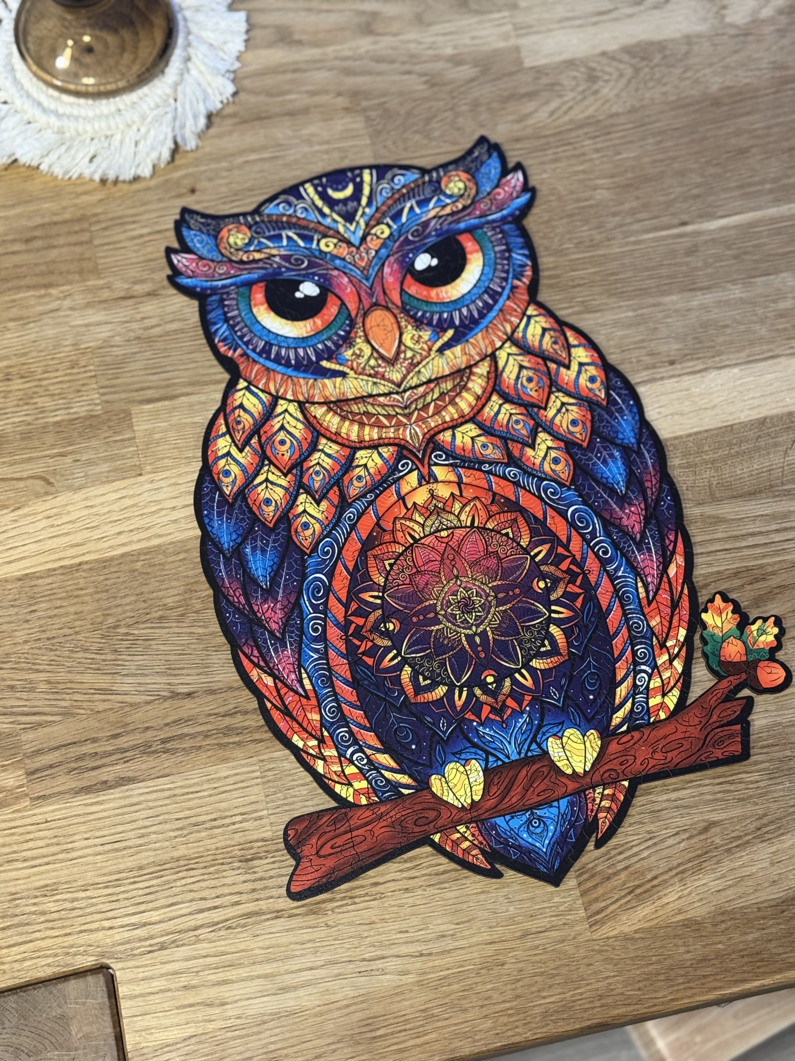 Tajomstvo múdrej sovy. Prémiové drevené puzzle zo 160 unikátne tvarovaných dielikov s tématikou okúzlujúceho lesa. Až 4 hodíny zábavy pre celú rodinu. Vyrobené a certifikované v Česku. Velikost A4 ≈ 29×21 cm.