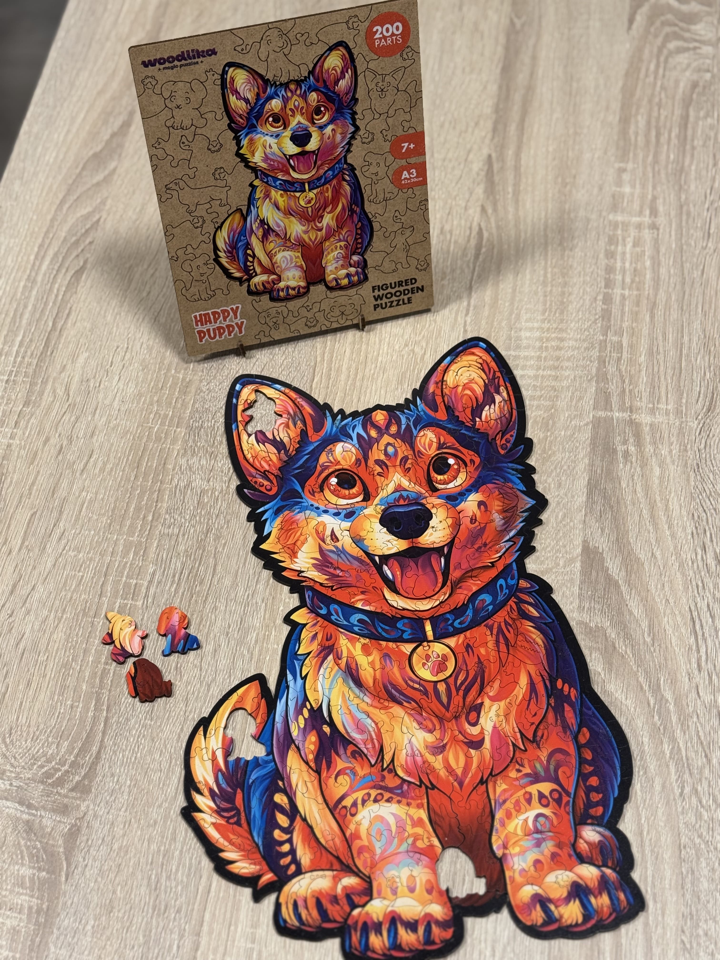 Úsmev štvornohého priateľa. Prémiové drevené puzzle zo 200 unikátne tvarovaných dielikov s tématikou rôznych 🐶 plemien psov. Až 3 hodíny zábavy pre celú rodinu. Vyrobené a certifikované v Česku. Velikost A4 ≈ 29×21 cm. Doporučený vek pre deti od 7 rokov.