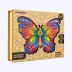 Čaro motýlích krídel. Prémiové drevené puzzle zo 160 jedinečných tvarovaných dielikov s tematikou pestrofarebných motýľov a prírody. Až 4 hodíny zábavy pre celú rodinu. Vyrobené a certifikované v Česku. Velikost A4 ≈ 29×21 cm.