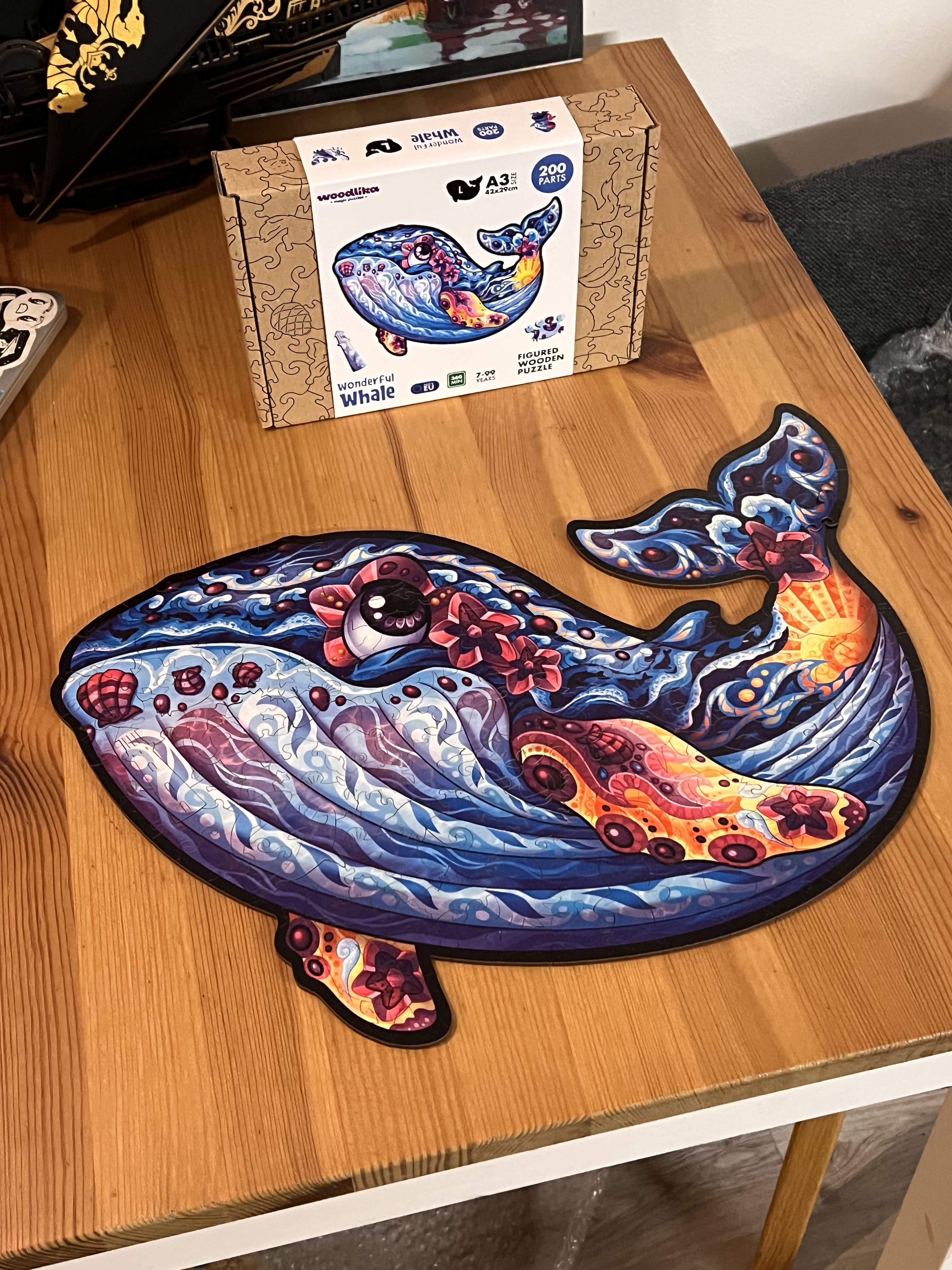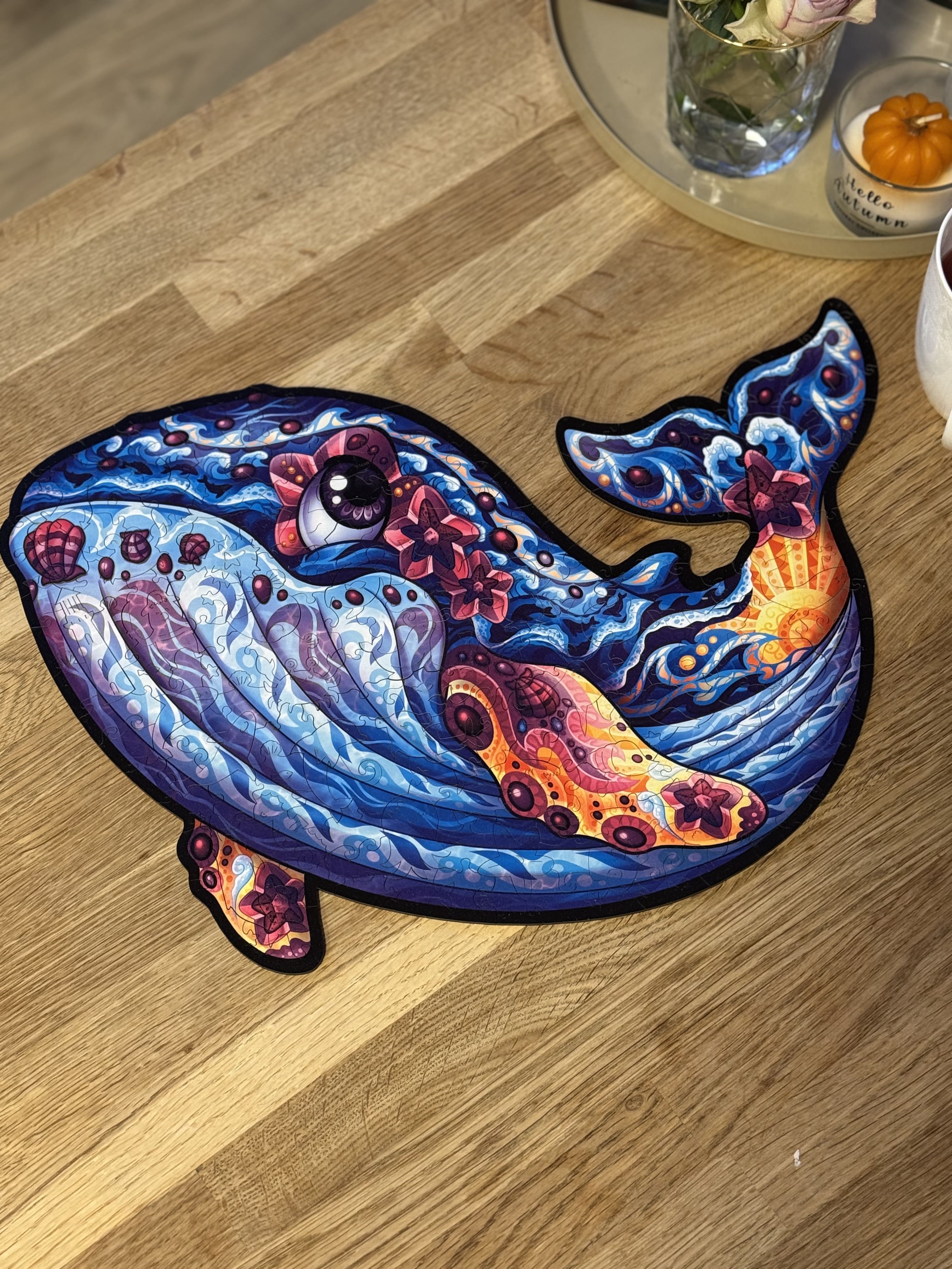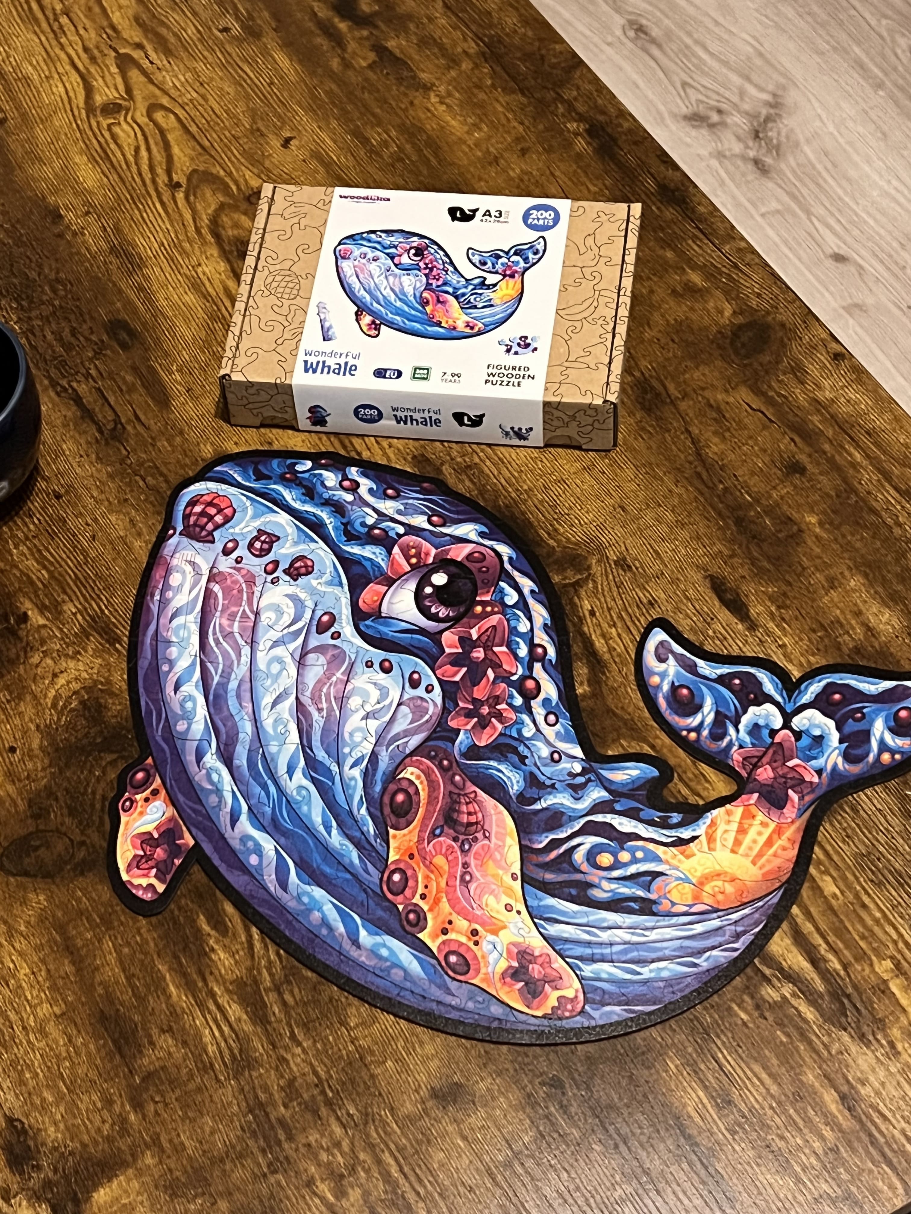 Tajomstvo hlbokého oceánu. Prémiové dřevěné puzzle ze 100 unikátních tvarovaných dílků s tematikou 🐋 morského sveta. Až 5 hodíny zábavy pre celú rodinu. Vyrobené a certifikované v Česku. Velikost A3 ≈ 42×29 cm. Doporučený vek pre deti od 7 rokov.